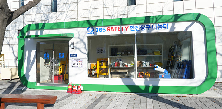 ▲ 작업 전·후 안전장구 착용과 작업복 환복 공간인 "맞이터", ▲ 협력사 근로자 전용 사무실, 회의 공간이 구비된 "모임터", ▲ 체형분석기, 스트레스측정기 등 장비를 통한 기본 건강 체크와 보건 상담을 제공하는 "보듬터", ▲ 반입장비에 대한 안전검사, 작업 전·후 안전서류 확인과 본부 안전제도 안내를 해주는 "지원터", ▲ 안전기준에 미흡한 장비를 보유한 협력사 대상 안전장비 렌탈과 회의용·소모성 안전장구를 무상 지급하는 "나눔터"로 구성되어 있어 협력사 근로자는 작업 전 건강 체크 및 투입 장비부터 보건·복지까지 전 과정을 One-Stop으로 지원할 수 있도록 구축하였다.