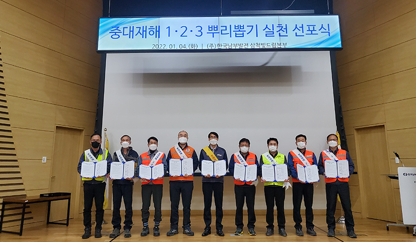 삼척빛드림본부는 ’22년 1월 27일부터 시행되는 중대재해처벌법에 대비하고 안전사고 예방 실천 의지를 담고자 본부 및 협력사가 참여하는 ‘중대재해 1·2·3 뿌리뽑기’ 선포식을 지난 1월 4일 시행했다.