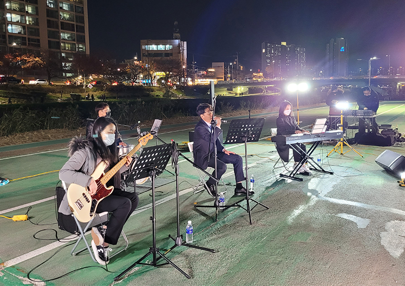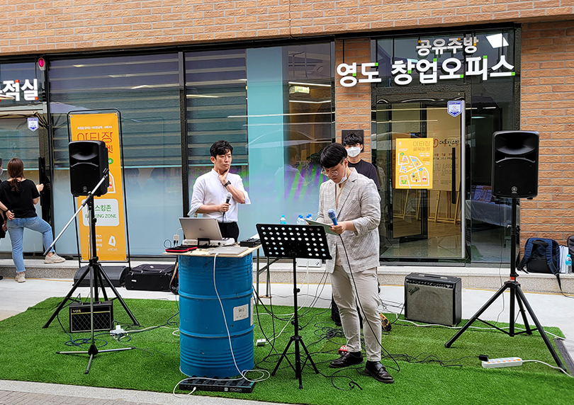 ‘뮤커톤 프로젝트’는 뮤직 해커톤 형식으로 음악을 좋아하는 사람들이 저희한테 신청을 하면 밴드를 만들어서 멘토링도 받고 연습도 하고 최종 라이브 공연도 하고 앨범도 만들어주는 프로젝트입니다. 그리고 연제구청이랑 협약을 맺어서 마지막 주 수요일 문화가 있는 날에 온천천에서 거리 버스킹 공연을 진행하는 ‘청설모 프로젝트’도 있습니다.