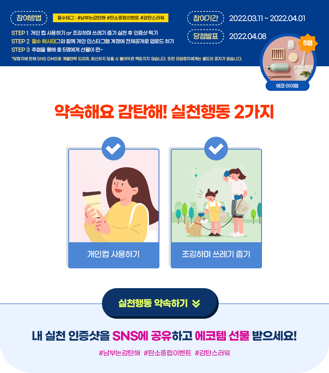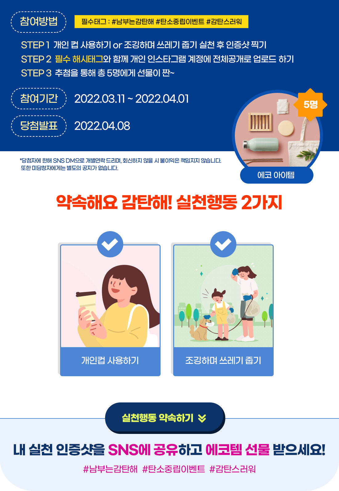‘불필요한 이메일 삭제하기’와 ‘창문에 에어캡 붙이기’ 중 한 가지를 실천하고 인증샷과 함께 필수 해시태그를 남겨주시면 추첨을 통해 소정의 상품을 드립니다.