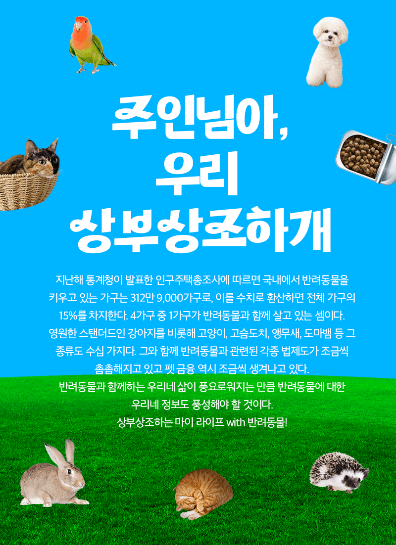 정부가 내년부터 반려동물의 진찰료와 입원비 등 일부 의료비에 매겨지는 부가세를 면제하는 방안을 추진하고 있다. 또 내년 상반기에는 전국 4,900여 개의 동물병원 진료 항목별 진료비, 산출 근거, 진료 횟수 등을 조사해 지역별로 최저·최고·평균 비용 등을 온라인에 공개할 예정이라고. 동물병원마다 같은 반려동물 질병에 대해 질병 명칭이나 진료 항목 등이 달라 병원별로 진료비가 달라져서 헷갈렸던 반려인들이라면 쌍수 들고 환영할 소식이다. 그간 동물병원별 진료비 편차 발생, 진료비 사전 안내 부족, 진료비 과다 청구 우려 등이 동물병원 의료 서비스의 문제점으로 지목되었던 만큼 이번 법제도가 이를 해소하는 기회가 되길 바란다.