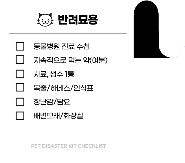 ※ 재난 기간 동안 담당 수의사나 조련사가 동물을 위한 대피소를 제공하는지 알아보는 것도 하나의 방법이다.