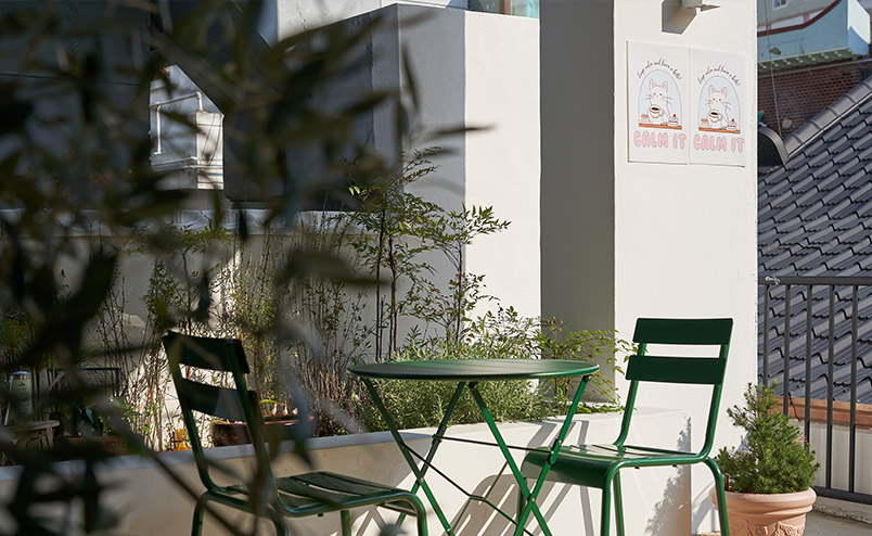 일단 저희 카페는 야외 테라스가 있으니까요. 이 동네에서 야외 테라스가 있는 카페가 흔치 않거든요. 애견도 동반할 수 있다는 점도 차별화된 점이고요. 그리고 저희 카페가 볕이 참 잘 들어요. 이 동네에서 보기 드문, 편안한 시간을 보낼 수 있는 카페로 남았으면 합니다.