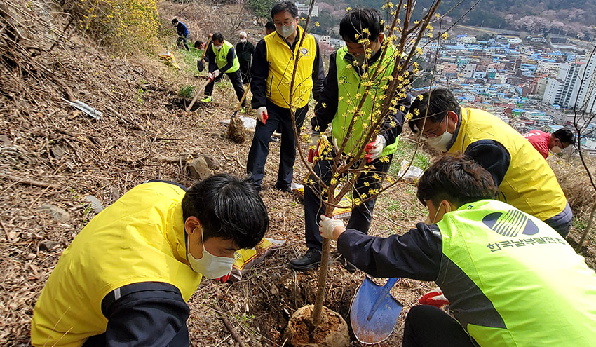 이번 식목행사는 매년 발전소 인근 감천 2동 주민자치위원회 주관으로 우리 본부가 후원하여 진행해오던 행사로서 WITH 코로나 시대를 맞아 오랜만에 여러 시민단체가 현장에 모여 직접 나무심기에 나서게 되었다.