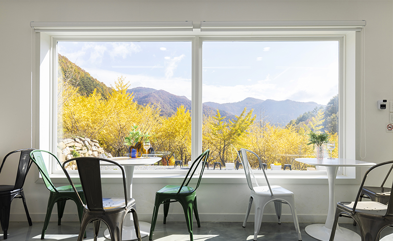 평창의 아름다운 자연을 마음껏 느낄 수 있다는 거죠! 가을에는 온통 노란빛이 일렁이는 은행나무 단풍을 만날 수 있고, 봄과 여름에는 싱싱한 초록빛 숲에서 힐링할 수 있어요. 음료와 디저트를 숲속에서 즐기다 보면 피크닉이나 캠핑을 온 듯한 기분을 느낄 수 있습니다. 이건, 비밀 아닌 비밀인데… 옐로우트리에서는 인터넷이 잘 안 돼요. 옐로우트리를 방문한 분들이 핸드폰과 잠시 결별하고 온몸으로 자연을 느꼈으면 하는 마음에서 인터넷 환경을 차단했어요. 하지만 전체 공간이 다 그런 건 아니니까 걱정하지 않으셔도 됩니다.