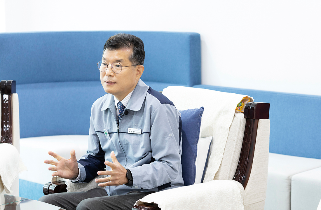 현재 근무 중인 직원들의 구성을 보자면 10년 차 이하 근무자가 약 45%, 20년 이상 근무자가 약 40% 이상입니다. 그래서 서로 이끌어주고 보완하며, 상급자를 잘 따르는 근무 분위기가 형성되어 있습니다. 또한 상주하는 협력사 외에도 청소 및 경비 근무 인력들과도 협력 관계가 상당히 돈독합니다. 그래서 친화적인 분위기죠. 보시다시피 저희 발전소가 영월의 자연을 마음껏 느낄 수 있는 위치에 있지 않습니까? 푸르른 산과 녹지대, 그리고 그 앞을 흐르는 남한강이 우리 임직원뿐만 아니라 협력사 임직원들에게도 심리적으로 좋은 효과를 끼치고 있습니다. 다른 발전소에 비해 여유로운 마음가짐으로 근무하고 있죠.