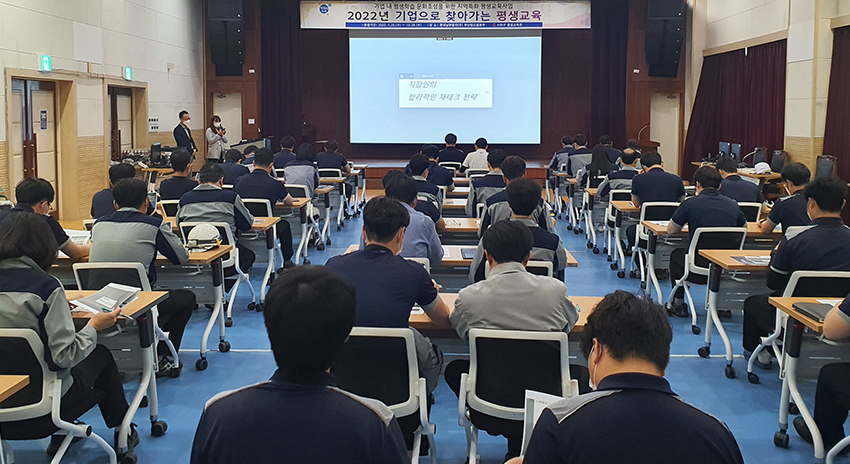 ‘부산본부 교육의 날(인문학교육)’은 본부 전 직원의 인문학 소양을 기르기 위해 매월 마지막 주 수요일에 시행되며, ‘사하구청 기업 방문 평생교육 프로그램’과 연계하여 무료로 다양하고 수준 높은 강의를 본부 내에서 들을 수 있는 프로그램이다.