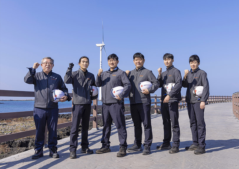금화PSC 제주풍력사업소 전 직원들은 앞으로도 최상의 정비 기술을 제공함은 물론 풍력발전 정비 기술 분야에서 최고가 되겠다는 집념으로 힘차게 달려 나가겠습니다. 풍력발전 정비 기술의 메카로 발전해나갈 금화PSC 제주풍력사업소를 기대해 주세요!