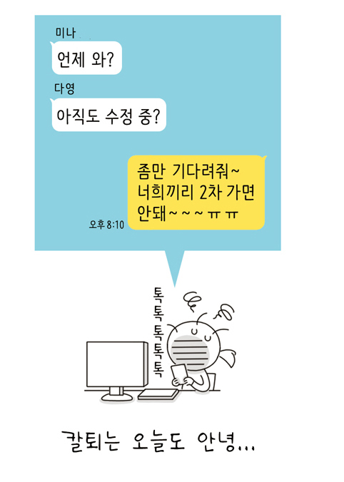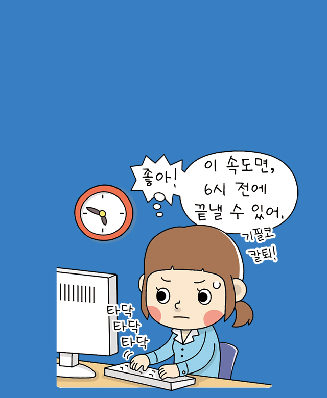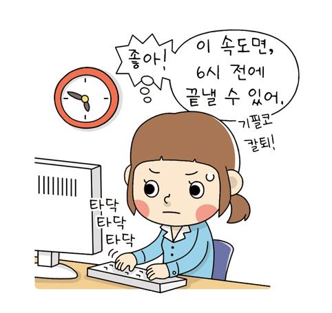 드디어 기다리고 기다리던 금요일. 오랜만에 친구들과 영화도 보고 줄 서서 들어갈 수 있는 인기 식당 예약도 완료했습니다. 이제 5분 후면 퇴근! 그때 들리는 상사의 목소리~ “이 프로~” 저는 퇴근할 수 있을까요?