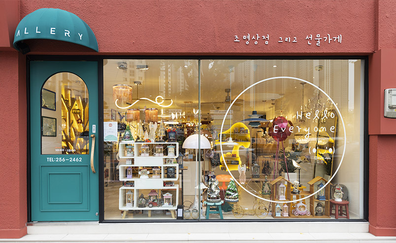 외관부터 내부 인테리어까지 일반적인 조명 가게와는 다른 분위기를 풍기는 갤러리 조명상점 그리고 선물가게는 20년 넘게 조명 사업에 종사해온 사장님의 감각과 조명에 대한 애정이 듬뿍 묻어나는 곳이다. 마치 갤러리에 온 듯 다양하고 유니크한 디자인 조명을 만나볼 수 있으며, 오르골을 비롯한 아기자기한 소품도 판매하고 있어 공간을 둘러보는 재미가 쏠쏠하다.