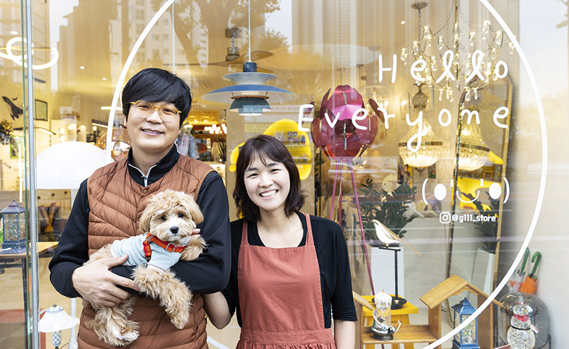 ‘조명상점’이라는 이름대로 조명을 판매하는 곳이에요. ‘갤러리’라는 단어를 붙인 이유는 예술적이고 감각적인 조명을 통해 마치 작품을 보는 듯한 느낌을 선사하고 싶었기 때문이에요. 그래서 공간 곳곳을 제가 직접 만들고 꾸몄어요. 조명 사업에 종사한 지 20년이 넘었는데요. 이 가게는 올 8월에 새롭게 오픈했습니다. 가게 한편에는 아기자기하고 예쁜 소품들도 진열돼 있어요. 그래서 ‘선물가게’라는 단어도 상호명에 넣었습니다. 소품을 판매해 이윤을 얻겠다는 생각보다는 아기자기하고 예쁜 소품들을 통해 얻을 수 있는 소소한 행복을 함께하고 싶다는 생각이 있습니다.