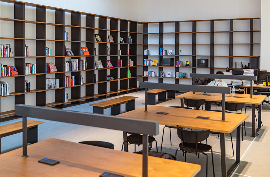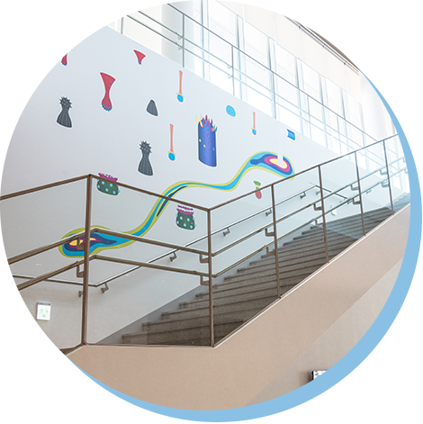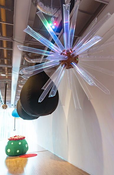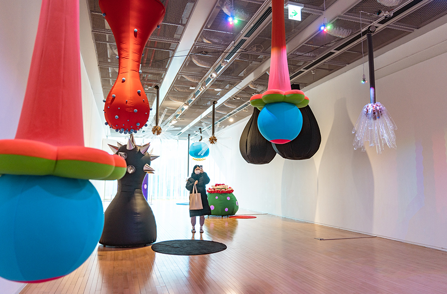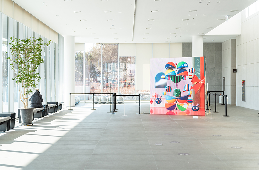 빙그르르 도는 계단을 따라 내려가면 제1·2전시장이 나온다. 가장 넓은 공간인 제1·2 전시실에서는 울산의 정체성인 산업과 예술을 접목해 협력한 사례를 소개하는 특별전 <예술과 산업>이 열리고 있었다. 지난 1월 29일까지 열린 전시에서는 자동차, 에너지화학, IT, 음악, 패션, 영화, 식음료 등 다양한 산업분야와 협업한 예술작품을 선보였다. 이제는 종결되었지만 또 2월 중순부터 또 다른 다양한 기획전이 예정되어 있다. 제3전시실은 1층에 위치한다. 이곳에서는 어린이 기획전 기획전시 <상상하는 정원>이 열리고 있었다. 전시장 중 유일하게 유리창이 있는 제3전시실은 미술관 건너편의 동헌 모습을 감상할 수 있어 현대와 과거가 만나는 묘한 느낌으로 만날 수 있다. 또한 미술분야의 잡지, 도록 등을 볼 수 있는 도서자료실이 1층에 있어 전시장을 돌며 힘들었던 숨을 고를 수 있었다. 그리고 미술관에서는 전시와 연계된 이벤트, 교육프로그램도 운영되고 있으니 홈페이지를 주시하고 기회가 된다면 방문해보길 권한다.