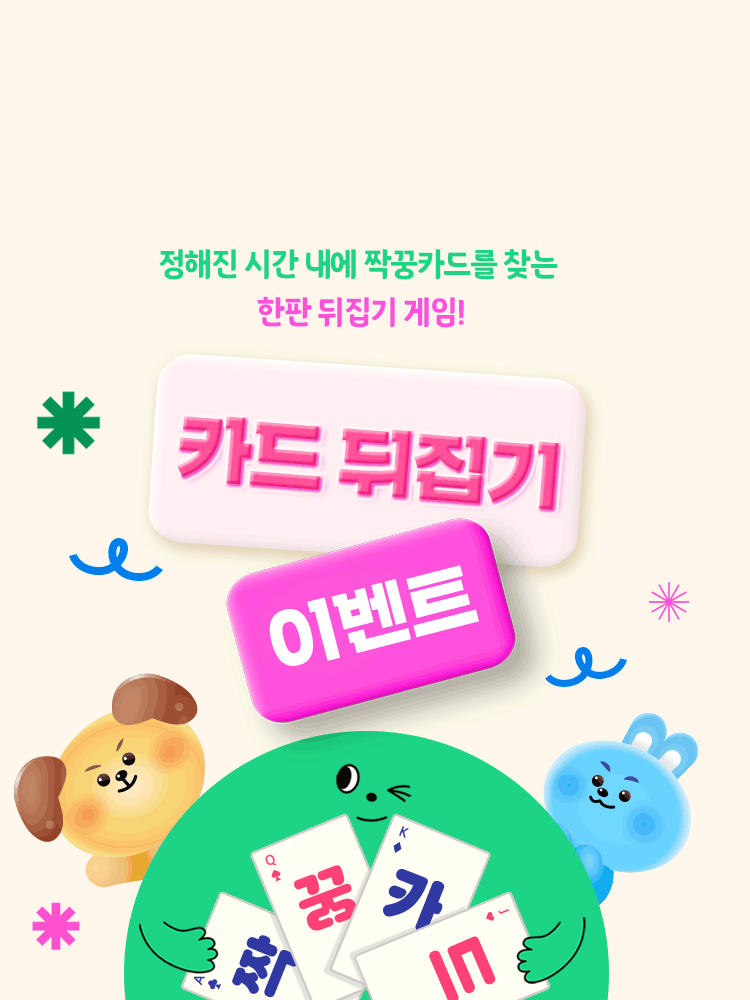 2. 60초 동안 6쌍의 짝꿍카드를 맞추면 게임이 완료된다.