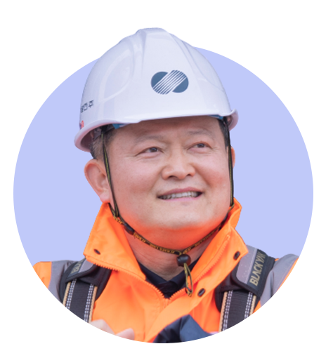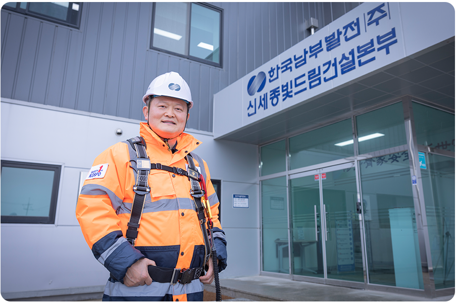 안녕하세요. 지난해 11월 7일부로 신세종빛드림건설본부에 부임한 본부장 윤상옥입니다. 저는 1992년 입사해 시운전, 해외법인, 노무 등 다양한 업무를 경험했어요. 지난 10년간 국내 표준석탄화력 8개 호기의 시운전을 처음부터 준공까지 함께한 사람으로 우리 회사의 기록에 남아있죠. 그리고 요르단, 칠레의 해외법인에서 기술이사, 법인장으로 5년 넘게 근무했습니다. 다시 한국으로 돌아와서는 해상풍력 업무를 수행했습니다.
