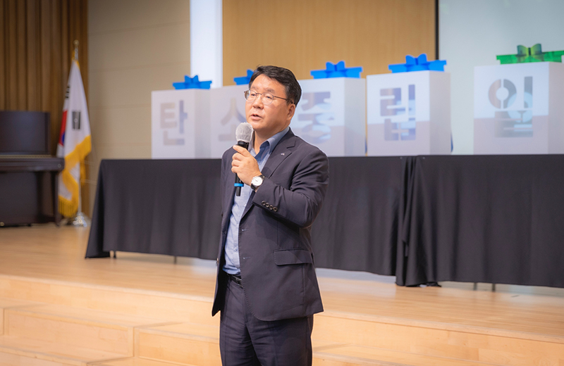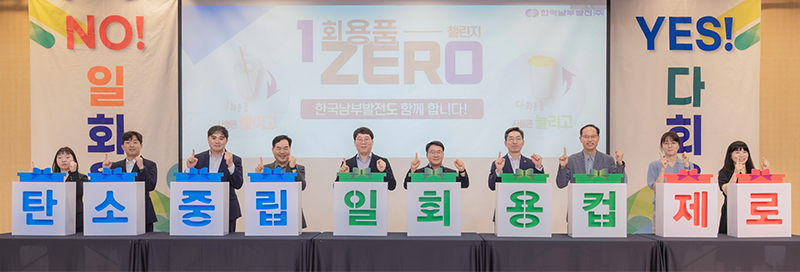 한국남부발전은 생활 속 탄소중립을 위한 녹색 발걸음을 한 발짝 더 내딛기 위해 다양한 활동을 하고 있다. 그 일환으로 본사에서 일회용 컵 반입 금지를 시행하기 위한 선포식을 열었다.
