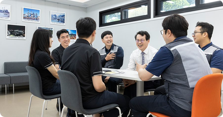 부산이 화력발전소일 때부터 근무하셔서 작업 환경에 대해 느끼는 점이 많으신 거 같아요. 그래서 환경을 많이 개선하려고 노력하신 것 같고요. 또 안전 관련한 부분도 중요하게 생각하신다고 알고 있습니다. 직원들의 편의를 생각해 주시고 소통하는 모습이 보여서 너무 좋습니다.