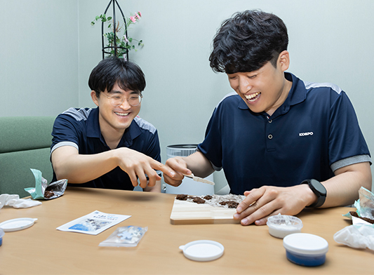 “와, 미술 시간이다”, “만드는 거 정말 좋아하는데!” 이번 ‘뚝딱! 공작시간’에 참여하기로 한 부산빛드림본부 총무기획부의 설정아 프로, 윤정주 프로, 박준태 프로는 시작 전부터 기대감을 잔뜩 드러냈다.
