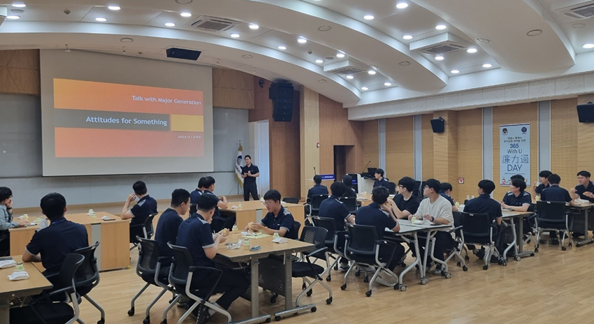 ‘무엇인가에 대한 태도(Attitudes for something)’라는 타이틀로 진행된 간담회는 산업, 금융, 업무, 감정, 인생이라는 다섯 가지 주요 항목에 대한 태도를 주제로 진행되었다. 강태길 본부장은 그중에서도 인생에 대한 태도에서 회복탄력성(Resilence)을 강조하며 적절한 스트레스 관리, 취미 갖기 등 인생을 즐기는 자존감 높은 직원이 될 것을 제안했다.