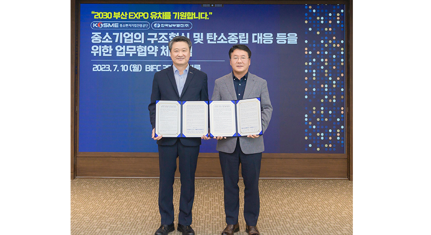 한국남부발전과 중진공은 7월 10일 부산 한국남부발전 비전룸에서 이승우 사장과 김학도 중진공 이사장을 비롯한 관계자 10여 명이 참석한 가운데, ‘중소기업의 구조혁신 및 탄소중립 대응 지원을 위한 업무협약’을 체결했다. 이날 체결된 업무협약을 바탕으로 두 기관은 향후 산업대전환 가속화에 따른 디지털전환 등 구조혁신 및 탄소중립 등 협력 중소기업의 신성장 동력 창출과 신사업 진출을 적극 지원할 계획이다. 이에, 한국남부발전과 중진공은 구조혁신사업을 중심으로 구조혁신 수요 공동 발굴 및 참여 우대, 탄소중립 수준 진단 및 정책규제 발굴 개선, 온실가스 감축을 위한 협업체계 구축, 협력사 핵심인력 장기재직 지원 등에 적극 협력하기로 했다. 또한, 양 기관은 탄소중립 분야에도 협력하여 구조혁신 우수사례 발굴 및 참여 협력사 지원 등 지속적인 성과 창출이 중소기업 경쟁력 강화로 이어지는 선순환 체계를 만들어 나갈 예정이다.