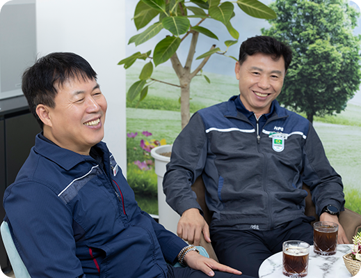 신바람은 주변 환경과 사람들의 정신이 모두 충족되어야 나옵니다. 신바람이 나는 회사는 변화와 발전이 자동으로 일어나죠. 최근 부족했던 환경적, 위생적인 부분이 많이 개선되었습니다. 변화된 환경을 직접 눈으로 확인하니 직원들도 자연스럽게 변화하고 있다는 걸 실감하고 있습니다.