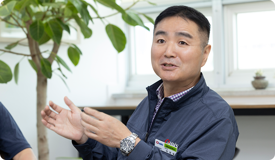 서성재 본부장님께서는 어떤 분보다 가장 먼저 현장에 다가오셨습니다. 일례로 이른 아침부터 오르비스 사무실에 오셔서 조회도 참관하시고 직원들에게 격이 없이 다가가 격려도 많이 해주십니다. 그동안 경험해 보지 못했던 걸 경험하고 있다고 할까요. 지금 우리가 모여 있는 이 공간도 본부장님이 조성해 주셨죠.