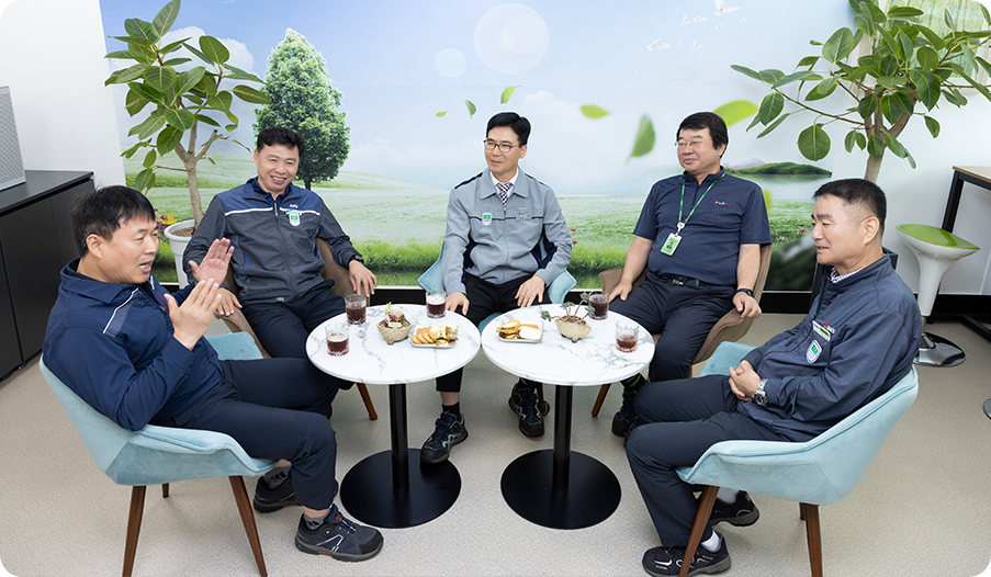 이곳에는 2,000여 명 정도가 근무하는데 그 중 우리 직원이 700여 명, 나머지는 협력사 직원입니다. 어떻게 하면 모든 근무자와 함께하면서 좋은 사업소를 끌어나갈 수 있을지를 고민했습니다. 지난 시간 일어난 사고들을 분석해 본 결과 기본에 충실해야 한다고 결론 내렸습니다. 기본을 잘 지킨다면 인적 실수들은 해소된다고 생각했죠. 그런데 기본을 바로 세우고 일하다 보면 다소 근무 환경이 딱딱해질 수 있기에 생활에 신바람이 나는 방안도 필요했습니다. 신바람은 사람들의 자발적 참여가 제일 우선되어야 하죠. 모든 이들이 자발적으로 참여하도록 부임한 이후에 다양한 일을 추진했습니다. 더불어 지역 주민을 위한 방안도 진행했습니다. 이렇듯 기본과 신바람은 상호 보완적인 관계인 거죠.