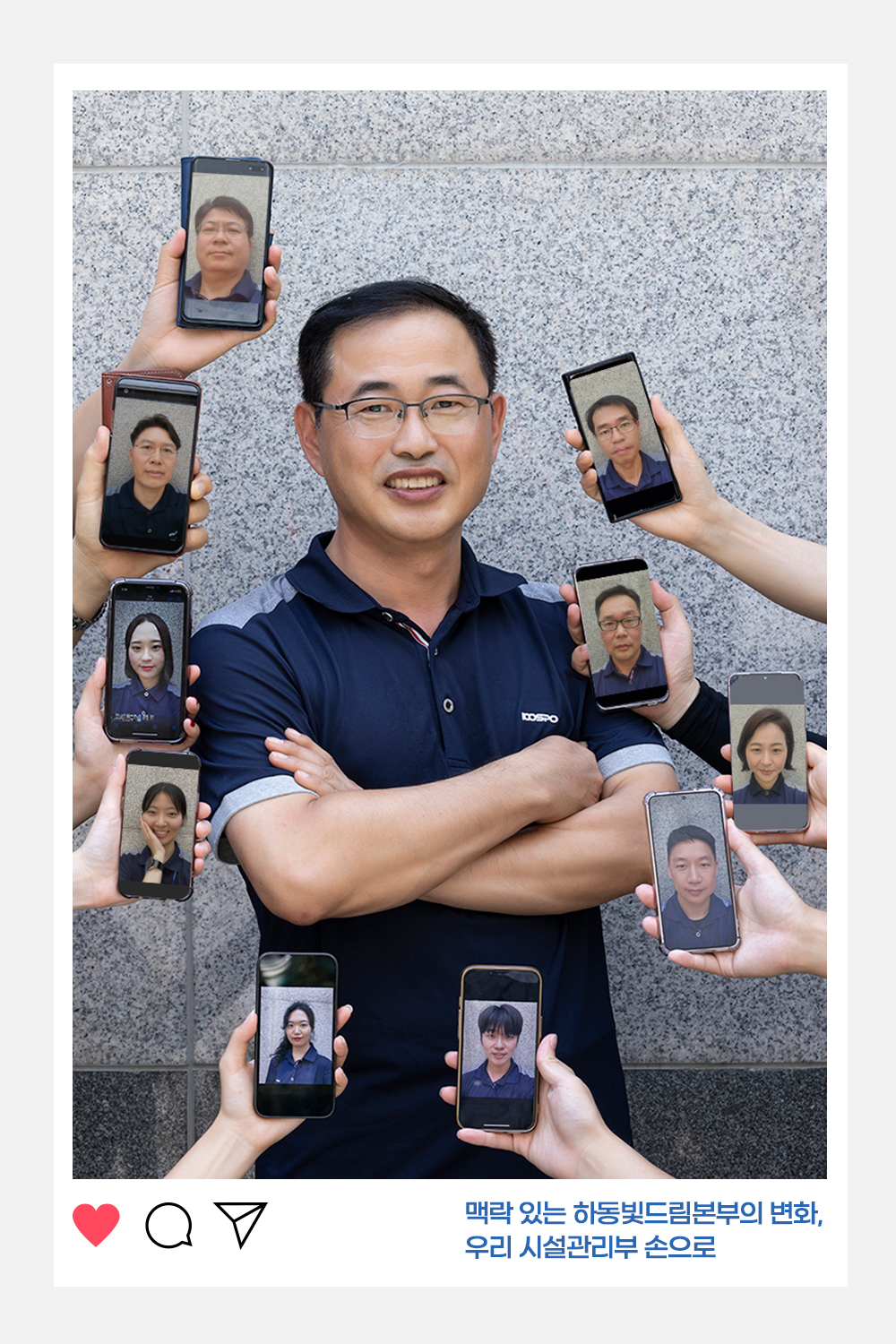 회사의 모든 업무가 원활하고 완벽하게 돌아가는 데는 보이지 않는 곳에서 궂은일, 힘든 일을 마다치 않고 밤낮없이 노력하고 힘쓰는 이들의 노력이 자리한다. 하동빛드림본부의 전 시설을 책임지고 관리하는 시설관리부가 바로 그런 조직이다. 안전하며 편안하고 쾌적한 환경을 만들기 위해 그 누구보다 열정을 다해 열심히 뛰는 시설관리부 직원들에게서는 넘치는 활력과 샘솟는 에너지가 느껴졌다.