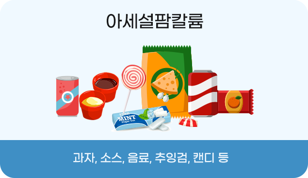 감초추출물, 수크랄로스, 글리실리진산이나트륨, 스테비올배당체, 네오탐, 아세설팜칼륨, 락티톨, 아스파탐, D-리보오스, 에리스리톨, 만니톨, 이소말트, D-말티톨, D-자일로오스, 말티톨시럽, 자일리톨, 사카린나트륨, 토마틴, D-소비톨, 폴리글리시톨시럽, D-소비톨액, 효소처리스테비아