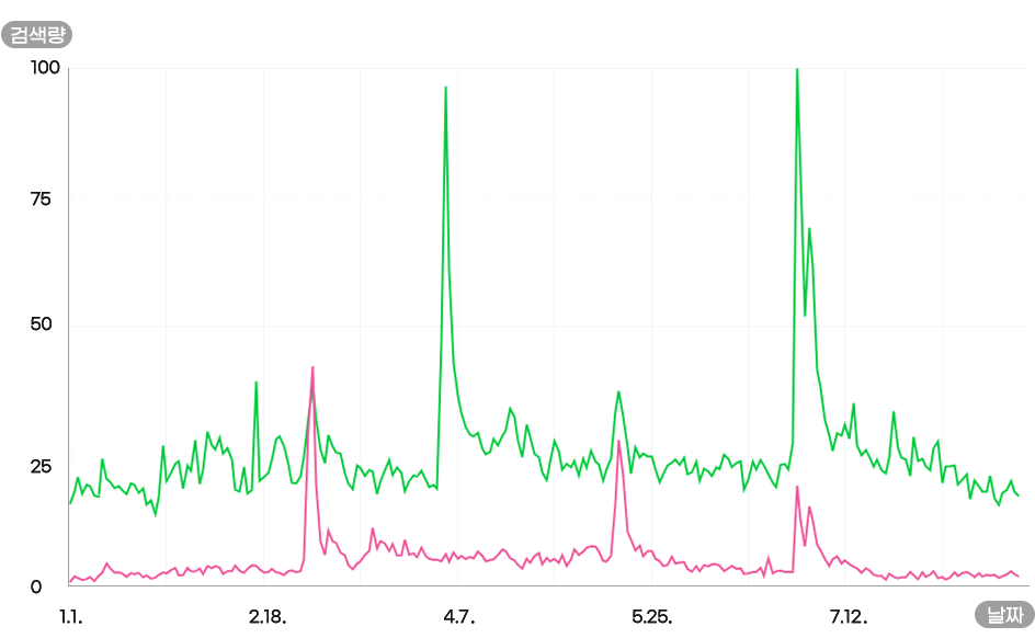 ※ 검색량 추이는 2023년 1월부터 2023년 8월까지의 데이터이다.