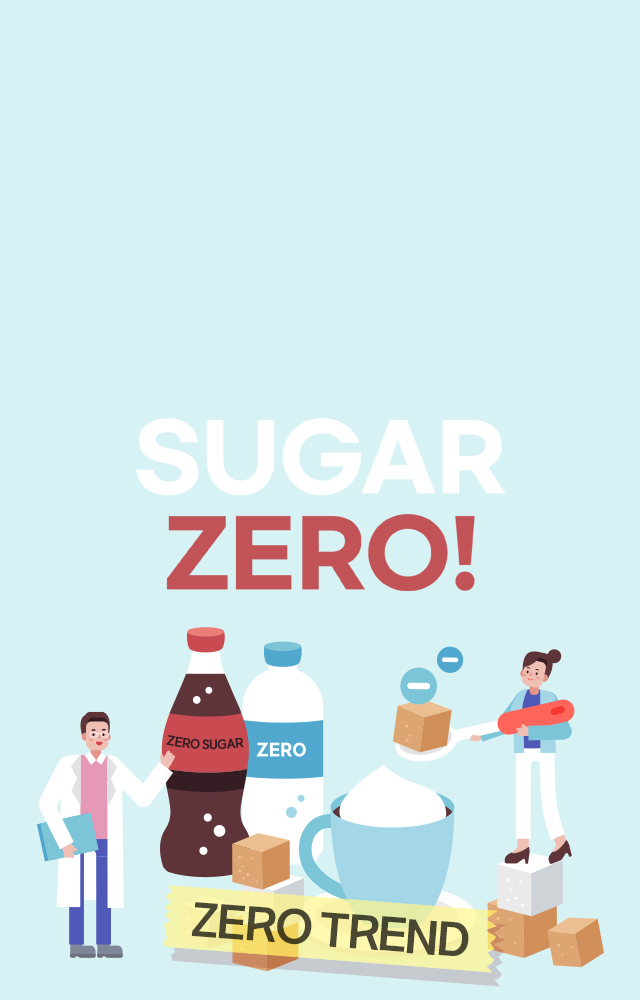 이런 흐름 속에서 업계들도 발 빠르게 움직이며 건강하고 맛있는 제품들을 선보이고 있다. 그중 가장 도드라지는 현상이 ‘제로(Zero)’, ‘슈거 프리(Sugar Free)’ 식품이다. 기존의 맛을 유지하면서 건강을 관리할 수 있는 대체품으로 인기를 얻으며 음료, 술, 과자, 디저트 등의 다양한 음식에 속속 제로 타이틀이 담긴 신상품들을 선보이고 있다.