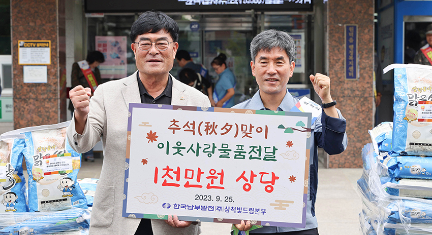9월 25일 오전, 원덕읍사무소에서 민병희 본부장과 박상수 삼척시장 등 원덕읍 관계자들이 참석한 가운데 빛드림본부 주변 지역 경로당에 1,000만 원 상당의 햅쌀 300포대를 기증했다. 이와 함께 중식 시간을 이용하여 본부 인근 식당을 이용하고 전통시장에서 지역주민들에게 장바구니 등을 배포하며 전통시장 활성화 캠페인도 병행해서 좋은 반응을 받았다.